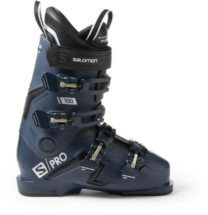 Salomon quest pro 100 men s downhill ski boots the quest pro 100 is powerful downhill boot with a strong and light shell designed to make your long ski days less taxing and more comfortable.